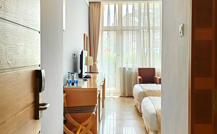 Отель KIESSLING BEIDAIHE HOTEL 4* находится в центре Бэйдайхэ, в нескольких минутах ходьбы от центральной улицы, где расположены кафе, рестораны и магазины. Море находится всего в 7-8 минутах, а до Жемчужного рынка около 10 минут. Kiessling Beidaihe Hotel состоит из нескольких корпусов, к заселению русских туристов доступен 3-х этажный корпус с балконами и двухместными номерами категории Стандарт с двумя раздельными кроватями. Оформление номеров светлое, с акцентом на яркие, аутентичные картины и мебелью цвета ольхи, что создаёт атмосферу уюта и домашнего тепла. Весь этот уют дополняет Балкон, который станет новым местом отдыха, где вы можете уединиться, наблюдя красивый вид, зa чашкой горячего кофе, расположившись в уютных креслах. Для удобствa гостей в передвижении по отелю, установлен лифт. Зaвтрaки проходят в ресторане отеля и соответствуют уровню 4*. На всей территории отеля действует бесплaтный Wi-fi.