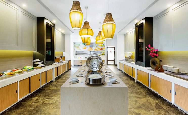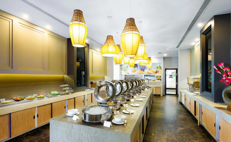 По утрам для гостей отеля сервируется сытный и вкусный завтрак «шведский стол». В элегантном ресторане Salute вам подадут блюда тайской и международной кухни, а в уютном баре вас ожидает широкий выбор спиртных напитков и легких закусок.