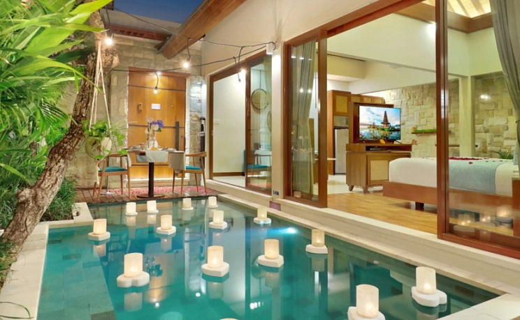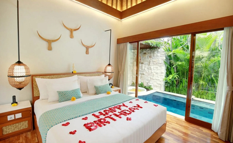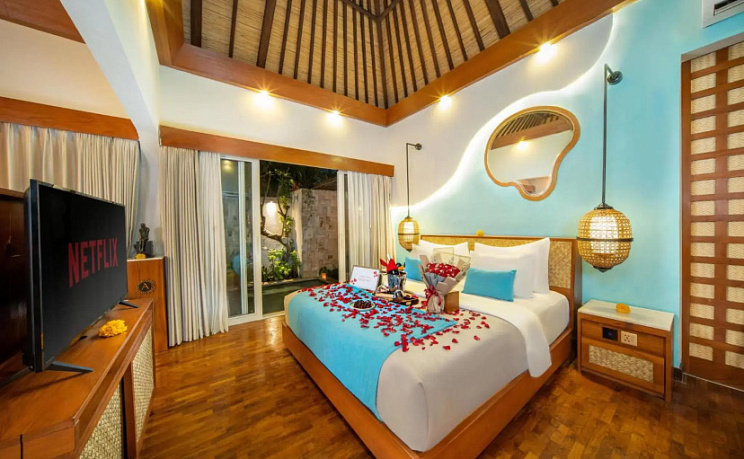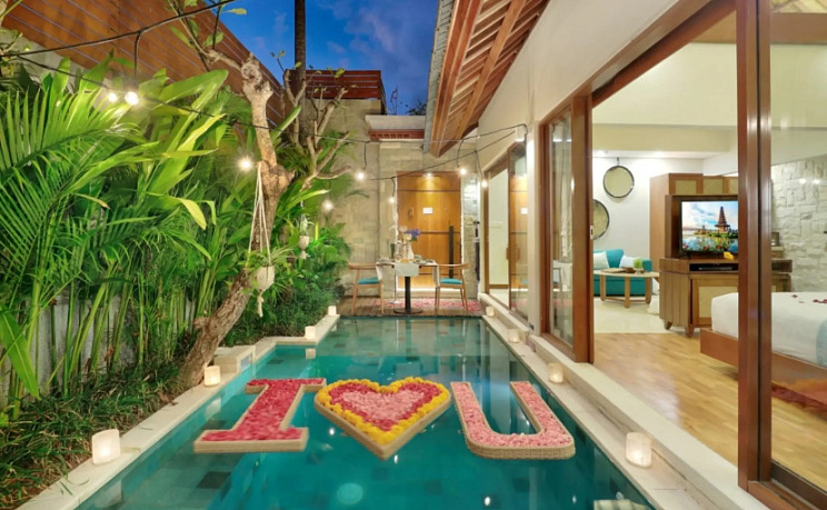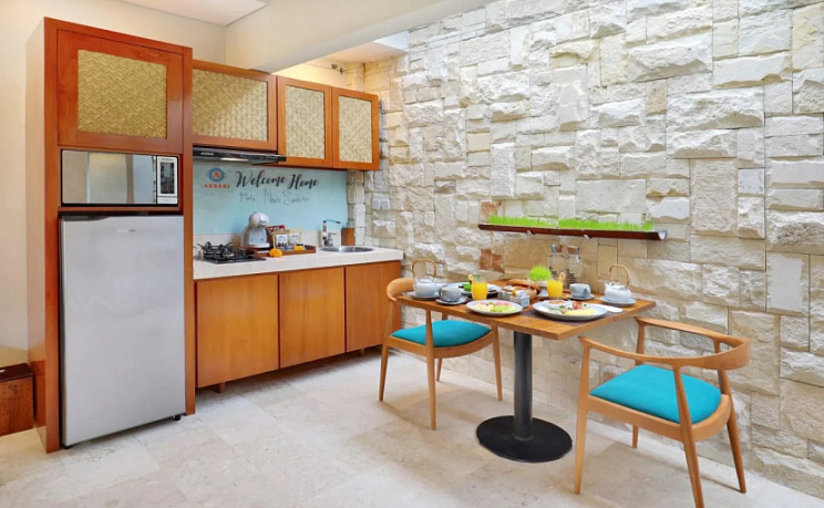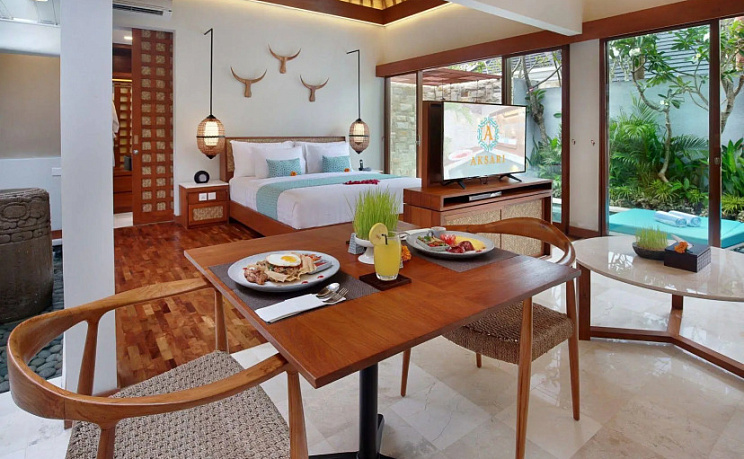 Ищете себе уголок без соседей за стенкой? Вилла «Aksari Villa Seminyak by Ini Vie Hospitality» расположена в Куте. Эта вилла находится в 4 км от центра города. Рядом с виллой можно прогуляться. Неподалёку: Пляж Куты, Пляж Легиан и Пляж Дабл Сикс.