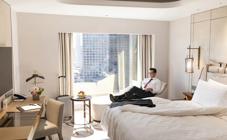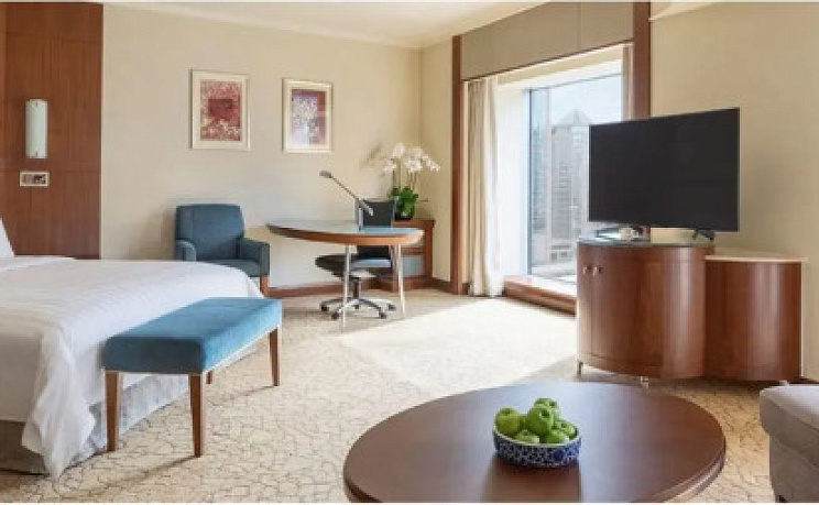 Отель Shangri-la China World предлагает 716 современных номеров, из окон которых открывается великолепный вид на город. В каждом номере есть сейф, ЖК-телевизор, и телефон. Также для комфортного проживания гостей предоставляется выбор подушек, мини-бар и набор для приготовления чая и кофе. В ванной комнате, отделанной мрамором, приготовлены элитные туалетные принадлежности.