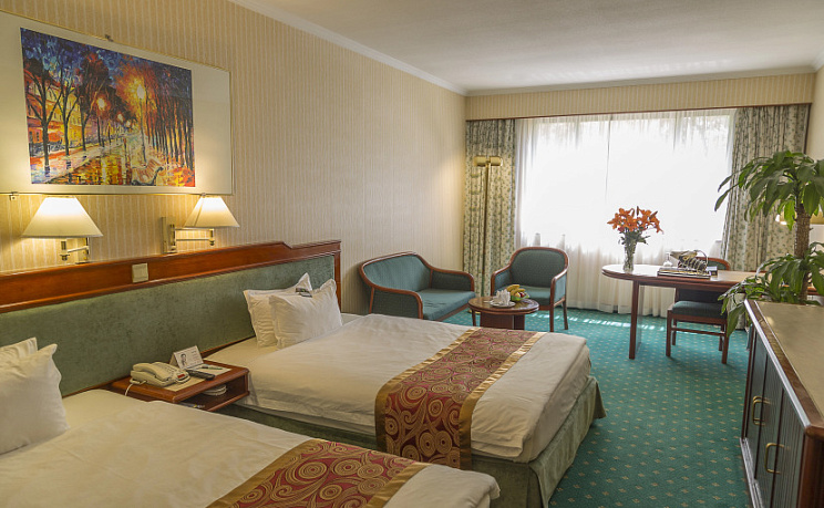 В номере вы найдёте душ, телевизор, мини-бар, халат и тапочки. Оснащение зависит от выбранной категории номера.
