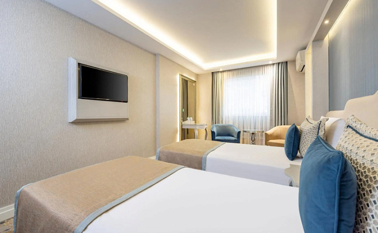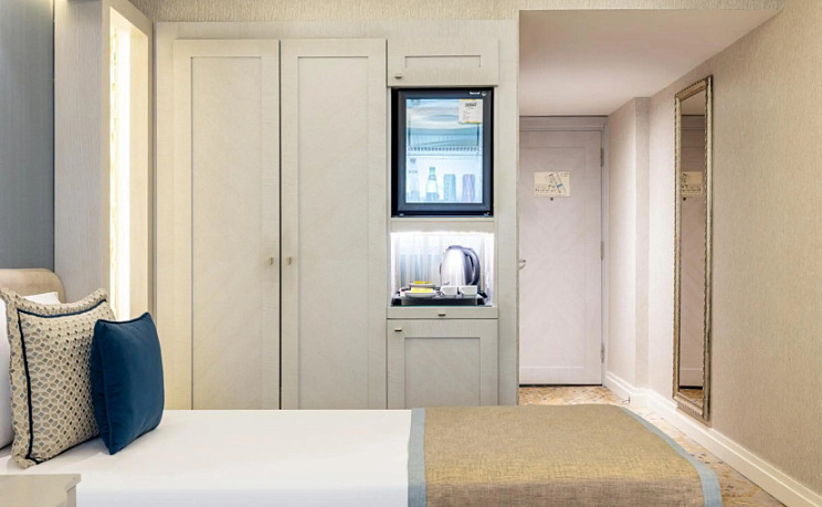 Номер обставлен и оснащён необходимым, чтобы отдохнуть после долгого и насыщенного дня. Имеются DVD-плеер, душ, телевизор, мини-бар, халат и тапочки. Оснащение зависит от выбранной категории номера.