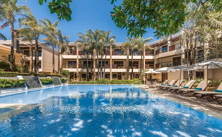 Супер расположение! Вроде третья линия, но, если выходить не через центральный вход, то вы сразу на пляже. И в самом центре вечернего да и дневного променада. Блатная цепочка отелей! Наверное единственная или одна из нескольких, кому разрешено прям на пляже выставлять свои лежаки с зонтиками, причем вам их ставят в то место, куда вы покажете и "настраивают" ваш отдых так, чтобы загорала определенная часть вашего тела или не загорала (манипуляции с зонтиком по отношению к расположению лежака и солнца). Бассейн не большой, но комфортный. Завтраки вполне. Красивый вид с балкона на бассейн и пальмы. Соотношение цена-качество на 10.