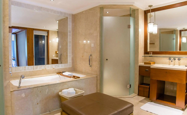 Отель располагает 296 роскошными номерами и 15 виллами. Все они оснащены кондиционером, телефоном, телевизором, мини-баром, удобствами для приготовления чая и кофе. В ванных комнатах есть дизайнерские туалетные принадлежности, купальный халат, фен.