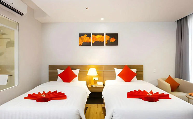 Номер уютно обставлен и оснащён необходимым, чтобы отдохнуть после долгого и насыщенного дня. Имеются душ, телевизор, мини-бар и тапочки. Перечисленные услуги есть не во всех номерах.