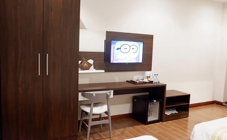 В номере вас будут ждать телевизор, мини-бар и тапочки. Перечисленные услуги есть не во всех номерах.