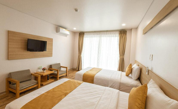 Номер уютно обставлен и оснащён необходимым, чтобы отдохнуть после долгого и насыщенного дня. Имеются телевизор, мини-бар и тапочки. Оснащение зависит от выбранной категории номера.
