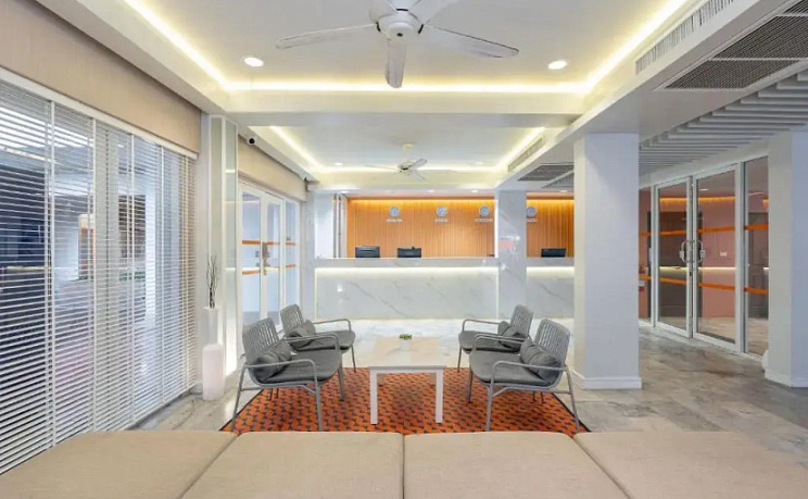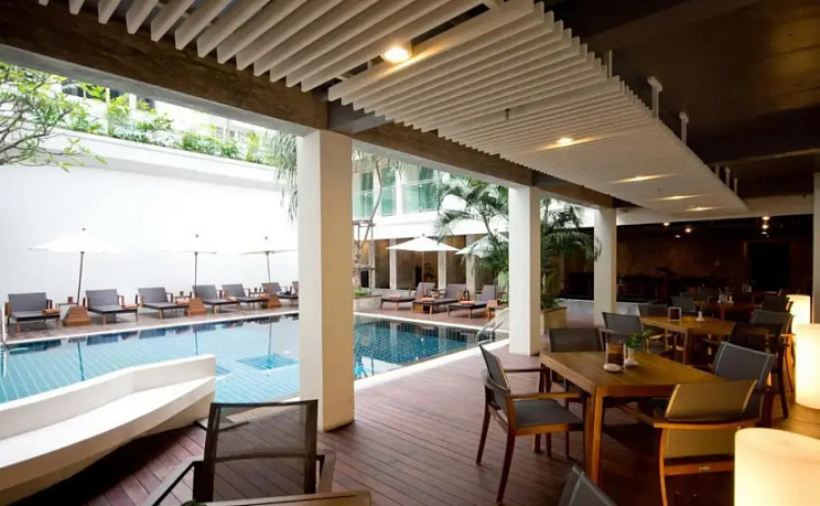 Здесь же, посреди зелени и пальм, расположились 2 бассейна, у которых гости отеля Sunshine & Residences проводят свободное время, загорая в шезлонге или купаясь. Также вы сможете воспользоваться прачечной, пунктом обмена валюты, а в соседнем здании есть интернет-кафе, где можно посидеть с ноутбуком, заказав чашечку кофе.