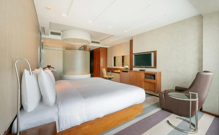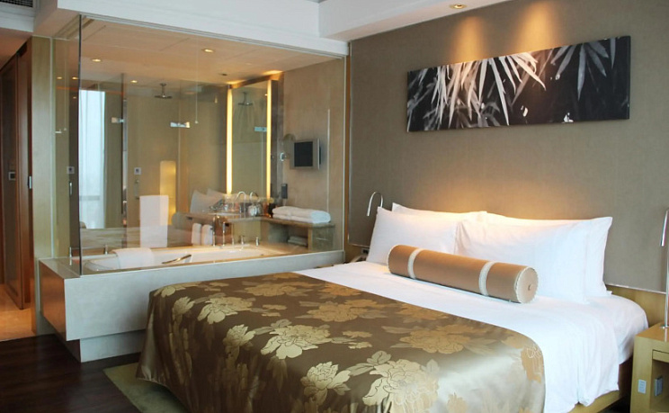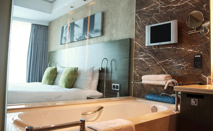 В номере вы найдёте душ, телевизор, мини-бар, халат и тапочки. Оснащение зависит от выбранной категории номера.